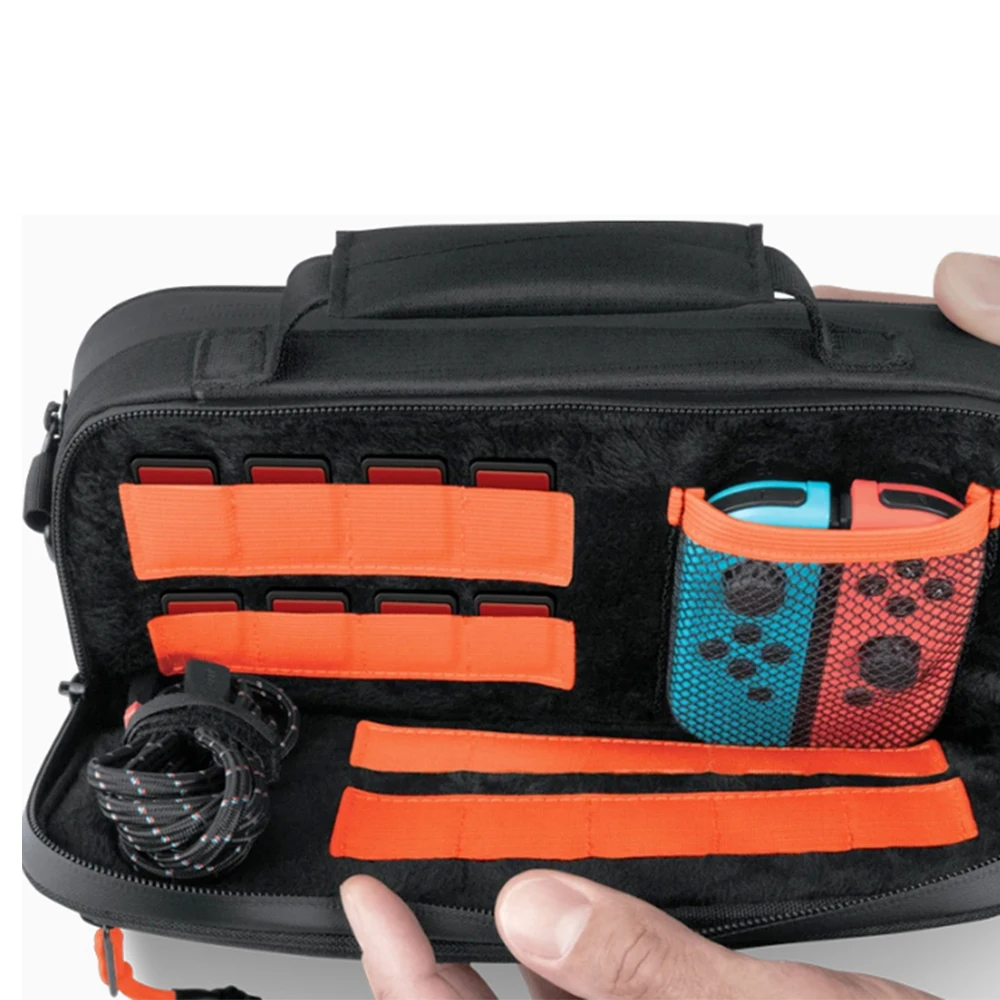 The Inner Mesh Pocket which can fit for extra Joy-Cons, cables and other small but essential accessories. This can't accommodate larger items like the dock or pro-controllers.